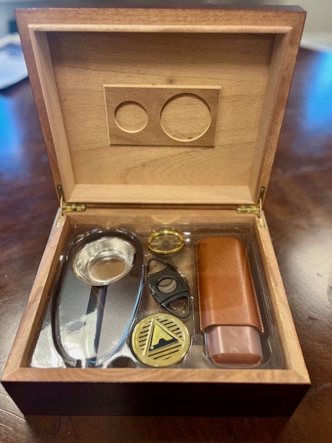 50 Count Ebony Wood Gift Set w/ Matching Ashtray, Cigar Case and Cigar Scissors. -