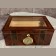 This humidor is being sold at a discounted price due to imperfections and stains on the lid, all accessories are included. See Pictures. For further information on this unit please call us at 954-975-2499. SD units are sold as is.This entirely unique beveled glass top humidor maintains up to 100 of your finest cigars. The Presidential is equipped with a removable tray and 2 spanish cedar dividers. One of the most distinguishing features of the Presidential is its external hygrometer and its bold inlay design on the forefront & lid of the humidor. All of the Presidential's intricate inlays are absolutely gorgeous. This handsome unit carries a high gloss finish, internal locking hinges, 1 large humidifier and gold lock & key set. Very popular!