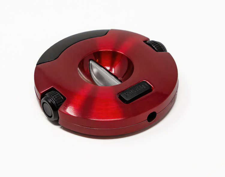 Finished in sleek two-tone pearlescent red & black, this cutter exudes sophistication and style, making it a standout accessory in any collection. This luxurious cutter possesses a fantastic weight and feel and performs exceptionally well with each and every cut. Equipped with both 10mm and 8mm punch cutters, this accessory offers versatility to accommodate various cigar sizes and smoker preferences.