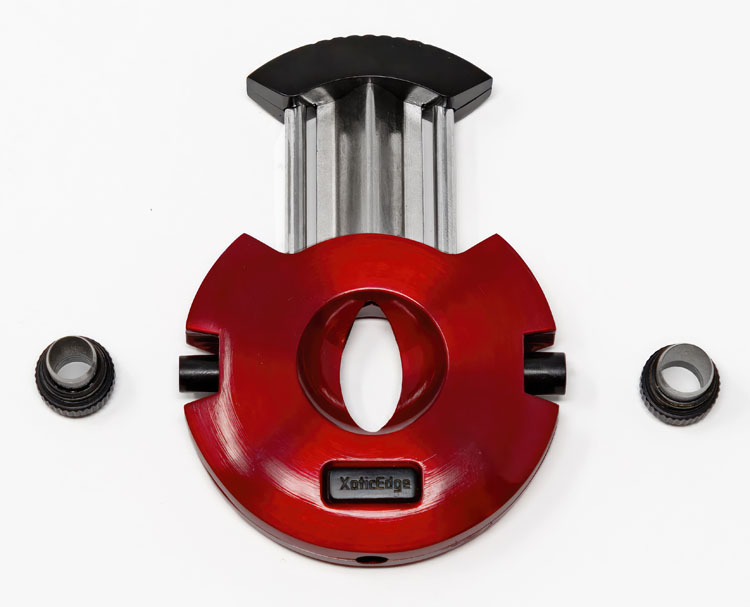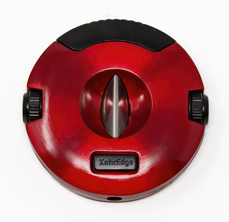 This cutter is being sold at a discounted price due to being a showroom unit, and having small scratches, the left punch is also missing. See Pictures. For further information on this unit please call us at 954-975-2499. SD units are sold as is.Introducing the all-new XoticEdge Xceed V-Cut combination cigar cutter, designed to bring your cigar-cutting experience to new heights. In addition to exceptional functionality, this cutter features a distinctive circular concept that sets it apart from the rest.